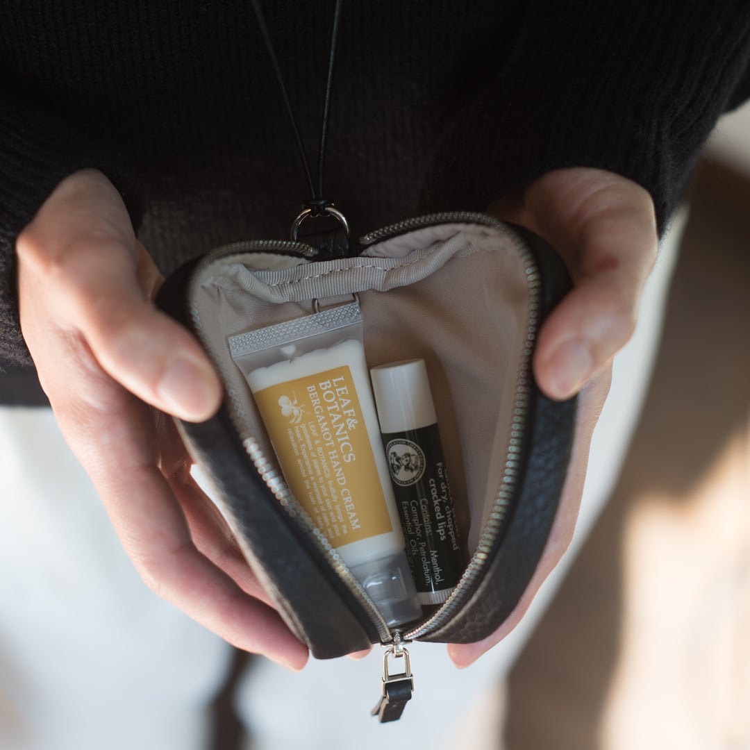 革紐は取り外しができ、ミニポーチとしてもお使いいただけます。