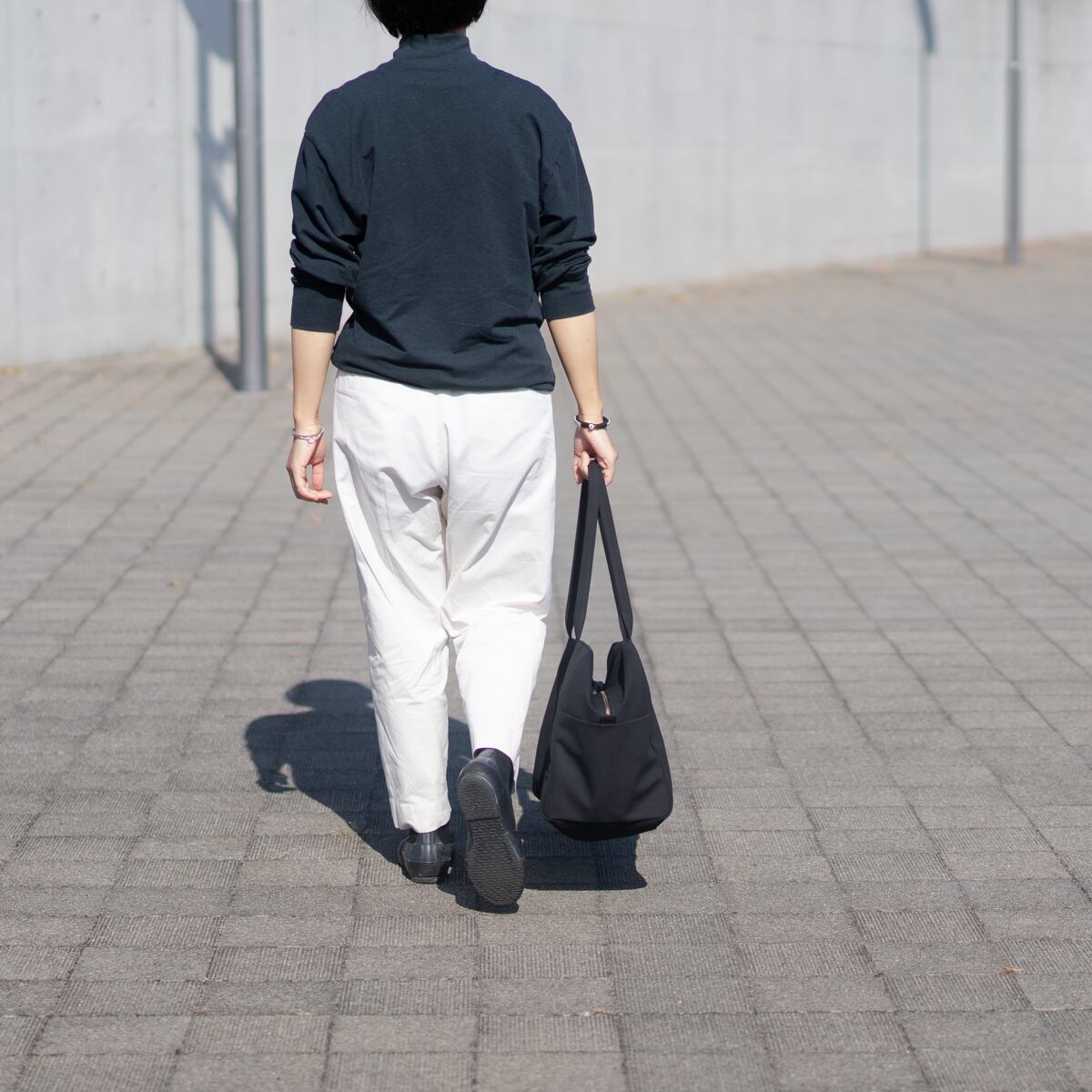 13枚目の画像は、中の様子がわかりやすいよう生成りのバッグをモノクロ画像に処理して表示しております。実際は内外ともに黒色の生地です。