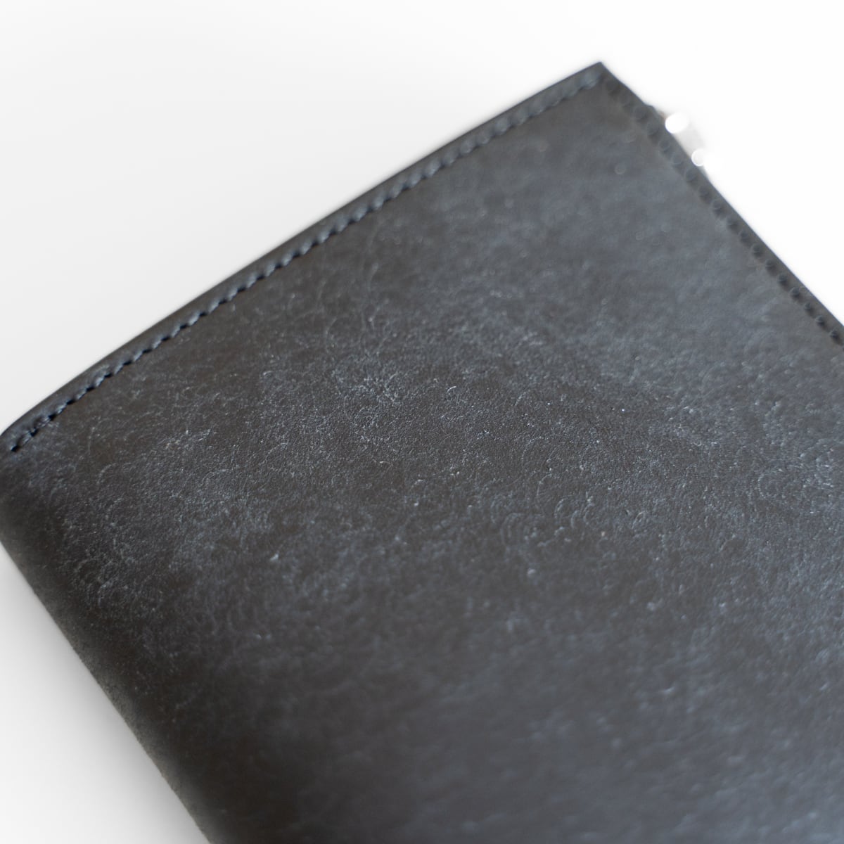 イタリアの伝統的な「バケッタ製法」でなめされ、スクラッチ加工を施した革です。革の表面が所々に毛羽立ち、少しザラリとした和紙のような風合いの革となっています。