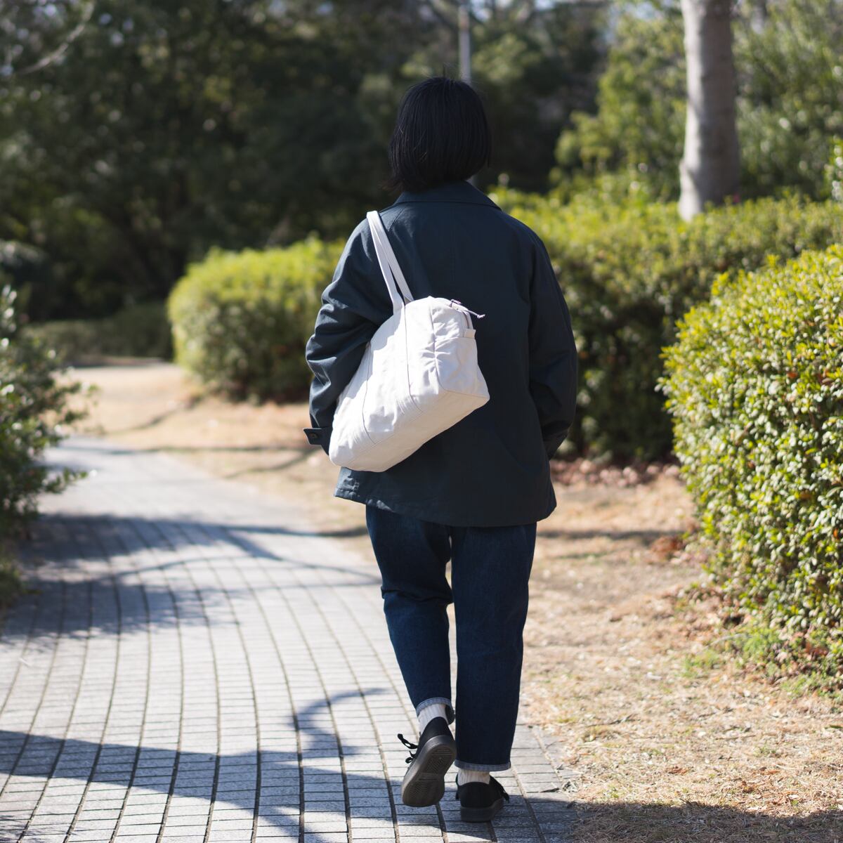 他2サイズ(L/S)よりもマチを薄めにし、ノート型パソコンやA4の書類を持ち運ぶのに使いやすい大きさに仕上げました。