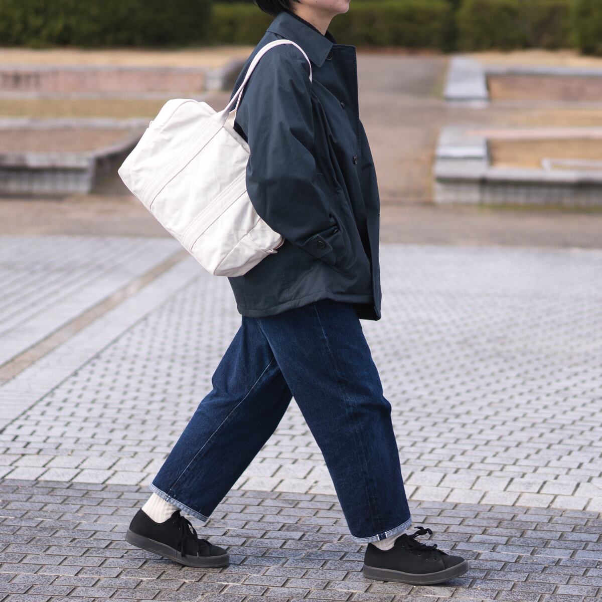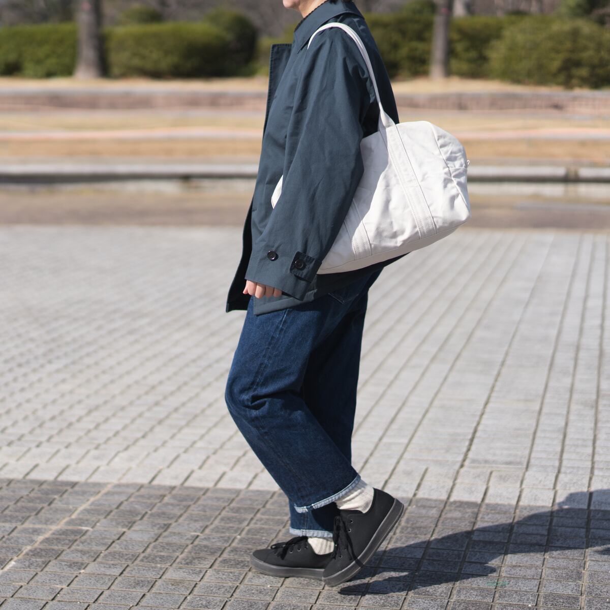 軍用規格と聞くと荒々しい生地感を想像していまいますが、きめが細かく、しなやかな生地感で上品な印象です。